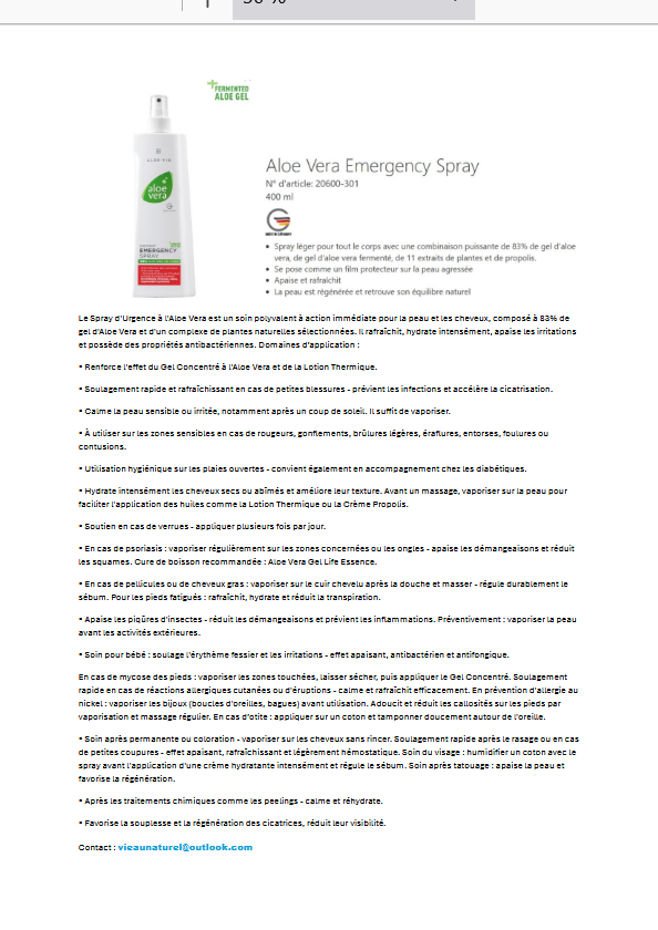 Aloe Vera Emergency Spray (problème de peau)